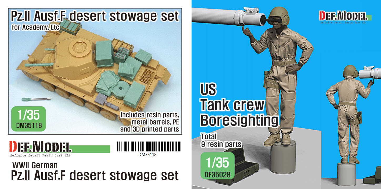 Def Model has been busy at work giving us lots of new items of resent. Base playing babes, "Brave Tiger" M113 updates, wheels, Phantom FOD covers and Kubelwagen bits. These two are their latest releases, we have info about them in our preview...